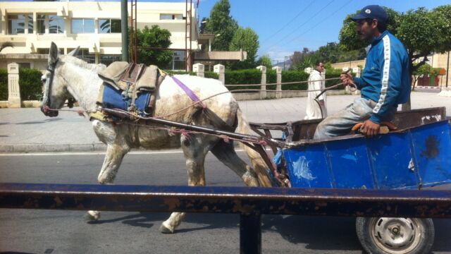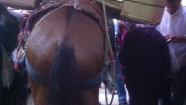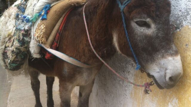 狭い道を荷物を担いだロバや馬も通行します。